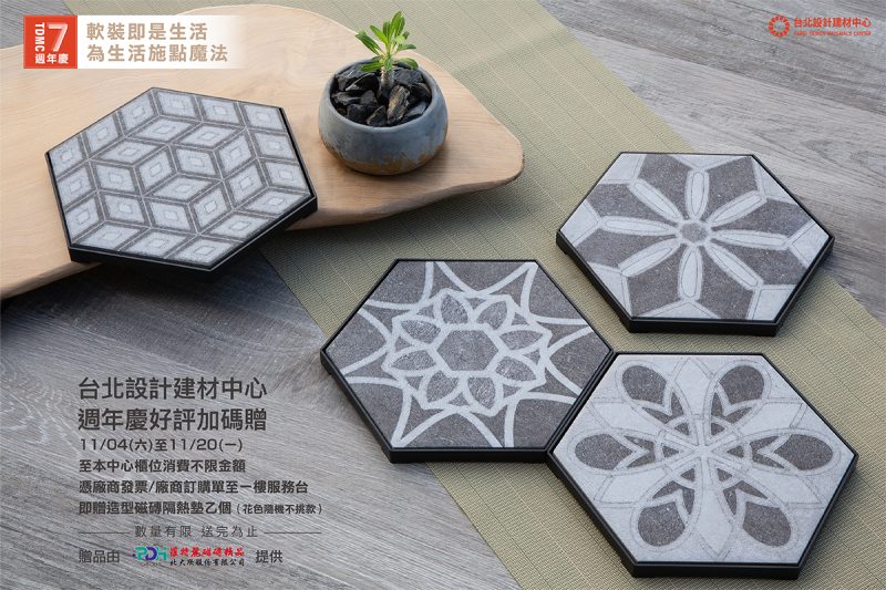 - 七週年慶 好評加碼贈好禮週年慶期間11/04(六)-11/20(一)至本中心櫃位消費不限金額憑廠商發票/廠商訂購單至一樓服務台即贈造型磁磚隔熱墊… 閱讀全文: 七週年慶 好評加碼贈好禮