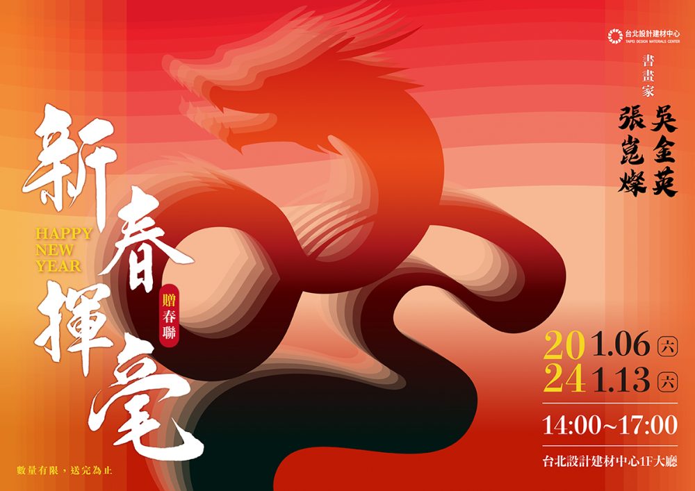 - 新春揮毫贈春聯!見財喜氣帶回家【新春特別活動】 新年將至,感謝品牌同仁與顧客朋友們長期相伴 1/6(六)、1/13 (六)下午2:00-5:00 限時… 閱讀全文: 新春揮毫贈春聯!見財喜氣帶回家