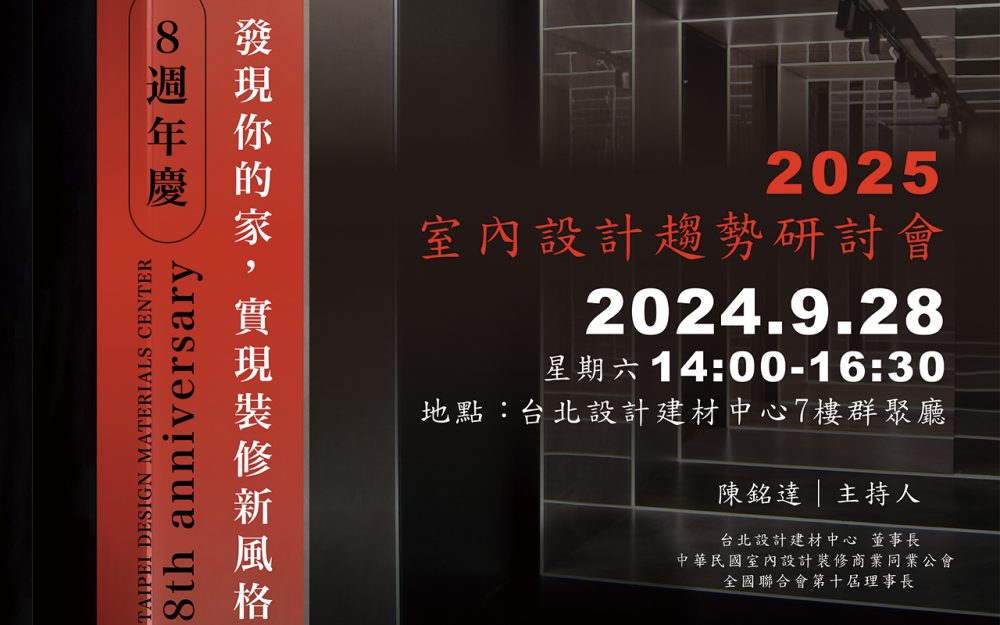 - 【2025室內設計趨勢研討會】|台北設計建材中心8週年,發現你的家| 【2025室內設計趨勢研討會】 主持人: 陳銘達|台北設計建材中心董事長 講師:… 閱讀全文: 【2025室內設計趨勢研討會】